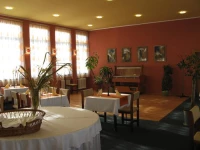 В ресторане отеля предлагается меню с выбором блюд, а в рабочие дни ресторан отеля ежедневно предлагает также меню по выгодной цене. Ресторан отеля предоставляет возможность реализации кэйтринговых услуг, крупных общественных мероприятрий, корпоративных вечеринок, промоций, выпускных вечеринок, свадеб или семейных празднований. Во время зимнего сезона по индивидуальному заказу, не менее, чем за 1 день вперед, мы подготовим для Вас блюда из утки или свинины, а в течение круглого года мы предлагаем Вам возможность отдыха за бокалом качественного вина в одном из винных погребков под названием Вино Нитра.