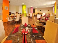 Ресторан открыт 7:00-10:00 для завтраков (шведский стол), а 10:00-22:00 для обедов и ужинов по меню. Можно также использовать его в качестве небольшого зала заседаний. Лобби-бар работает круглосуточно.
