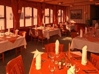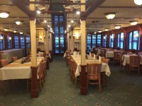 Ресторан вместимостью 140 мест отличается богатым выбором международной кухни с пестрым меню различных блюд для гурманов и гастрономических деликатессов.