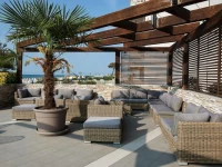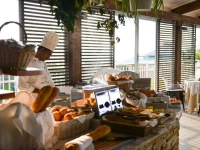 В отеле есть собственный панорамный ресторан с обслуживанием по меню, который открыт на ужин. В нем подаются изысканные блюда итальянской кухни и превосходные вина. Завтрак и обед по системе "шведский стол" сервируются на пляжной террасе.