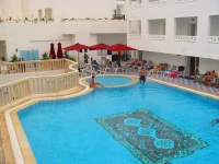 Приехали в отель 21 июня. Заселение прошло быстро, дали двойной номер. Номер маленький. В номере есть телевизор (каналы на французском, немецком и арабском языках), кондиционер, холодильник. Вид из номера на внутренний двор отеля. В ванной полотенца для лица и банные, а вот на пляже полотенец нет. Мы брали на ресепшине под залог 10 динар за полотенце. Потом когда полотенца сдаёш динары возвращаютс