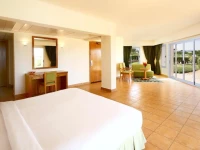 Большой отель, по территории ходит автобус. Часто и по расписанию. Всем всего хватает, очередей нет. Места на пляже занимать не надо.