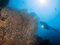 Плавать с ластами и маской можно везде. Купаться тоже (песочек на пляже), но кораллы очень близко к воде. Для детей не подходит. И вообще ни в коем случае не стоит ехать туда с детьми. Для детей досуг не организован совсем (нет площадок, игровых центров и развлекух) и купаться вблизи кораллов детям опасно (а там они везде). Из минусов – старая сауна и большое количество персонала, которое почему-т