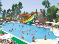Территория хоть и небольшая но зеленая и ухоженная , есть водные горки , три бассейна, две детские площадки, Хамам бесплатный, wi-fi только в холле отеля и это ужасно напрягает, там всегда куча детей которые вместо того чтобы плавать и наслаждаться морем сидят в гаджетах играют и вирижжат на весь холл.