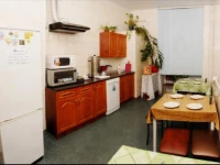Общая кухня - холодильник и микроволновая печь, чайник и посуда