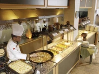 Огромное разнообразие и качество,обилие мясных блюд,зелени ,сыров,много фруктов,десертов,на территории автоматы с Айраном,холодным чаем,кофемашины.
