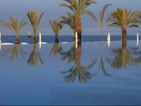 Оказывается на Кипре в декабре не так уж и плохо.Отель новый,5*,мы брали питание завтраки и ужины и нам хватило,погода была прекрасная ,правда были дни когда лил дождь.Днём можно и поплавать и позагорать,температура воздуха градусов 22 а воды 18-21+.Территория для Кипрских мерок средних размеров,мне понравилась,всё в белых спокойных тонах,есть бар у бассейна и у моря.Пляж совсем маленький и купают