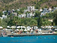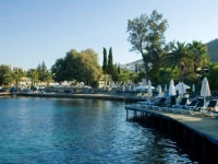 Прежде всего о главном - о море. Оно в Бодруме поистине сказочное! Прозрачное, как слеза и разноцветное. При входе небольшие камушки (поэтому если пяточки нежные, рекомендую брать коралловые тапочки), а потом песочек. На пляже отеля есть несколько заходов в море: два по небольшой лесенке на мелководье (там заплывали мамочки с малышами), и заход