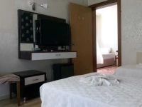 С виду маленький тихий отель,море близко,питание ужасное,в баре никогда нет спиртных напитков-бармен кричит,что закончились.Номера очень скромные,телевизоры еле работают глуча,а в общем жить можно за такую плату.Устраивая каждодневные скандалы в столовой,вы получите более свежую(не гнилую)и разнообразную пищу.То что бармен ерджан грубиян и хам это правда!
