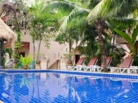 Тихий уютный отель для спокойного отдыха. Комплекс двухэтажных бунгало, своя территория с бассейном. Территория - цветущий сад. До пляжа недалеко, пешком не торопясь я шел 9 минут. Пляж чистый , море - идеально чистое. По сравнению с ПАТОНГОМ - более спокойный. Простые номера с ежедневной уборкой и сменой полотенец. В номере душ, туалет, маленький гардероб, холодильник, ТВ. Ежедневно две бутылк