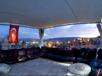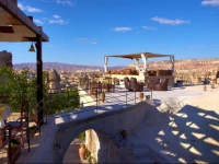 Отель Travellers Cave Hotel 2* находится в селении Гёреме, в 5 минутах ходьбы от центра, на вершине холма. Само здание отеля расположено в пещере, номера вырезаны в вулканической породе и красиво оформлены в османских национальных традициях. С террасы открывается красивейший панорамный вид на долину Гореме. В окрестностях есть много интересных мест, которые могут посетить гости отеля. На месте Вы можете заказать экскурсии по Каппадокии, полет на воздушном шаре, катание на лошадях или верблюдах, сафари на джипах и фольклорные шоу. До аэропорта 30 км.