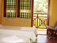 A satellite TV and a fridge are in Pink Palace’s rooms. Each comes with tiled floors, wooden furniture, and colourful curtains. A hairdryer is in the private bathroom.