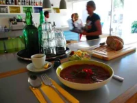 Отель предлагает своим гостям уютный ресторан с интернациональной и вегетарианской кухнями, стильные номера с бесплатным интернетом и радушный приём.