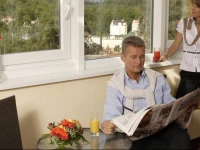 Все процедуры проводятся в здании отеля в бальнеологическом центре с бассейном. Принимают на лечение детей (на первый медосмотр посылают в детскую лечебницу).