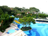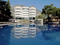 Отель Catamaran Resort 5* расположен на Средиземноморском побережье Анталийской Ривьеры, в курортном местечке Бельдиби. Территория отеля находится на берегу Средиземного морят. От здания отеля до моря 100 метров. Находится в 12 км от города Кемер. Отель построен в виде морского катамарана с парусом. Номера просторные, обставлены светлой мебелью. С балконов номеров открывается прекрасный вид на горы. Территория отеля зеленая и уютная. До аэропорта Антальи 45 км.