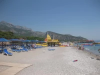 Пляж неплохой , но заход в воду очень затруднен из за острых камней , поэтому реально купаться только с неплохого мостика.