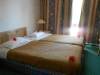 Отдыхали с 10.09.2011 без детей. Отель вполне нормальный для 4-х звезд. Да, староват, но по крайней мере у нас в номере все работало и абсолютно никаких проблем не было. Советую по прилету в аэропорту сразу поменять валюту на динары. Курс у них везде одинаковый, что в банках, что в отеле, что в аэропорту. Так что ничего не потеряете. При заселении в паспорт динары и будет хороший тихий номер с вид