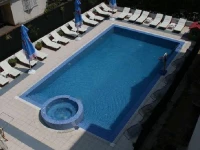 Для гостей отеля выделен участок Славянского пляжа напротив корпуса, с лежаками и зонтиками. Пользование пляжем и пляжными принадлежностями включено в стоимость проживания. Пляж широкий, песчаный. На пляже есть всевозможные развлечения. Рядом есть бары и рестораны вдоль набережной.