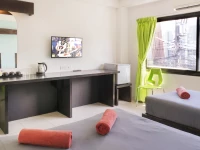 Наши номера очень уютные и комфортабельны. У нас есть 3 типа номеров: Стандартный (одна большая двуспальная кровать), Twin (две односпальные кровати) Трехместный (одна большая двуспальная и одна односпальная кровать). Все номера оснащены кондиционером, телевизором, холодильником и бесплатным скоростным доступом в Интернет (Wi-Fi), Номера включают в себя: бесплатная питьевая вода, чайник для приготовления чая и кофе, туалетные принадлежности, Ежедневная уборка номера, ванные комнаты с горячим душем, кабельное телевидение ( с русскими каналами ). В отеле вы можете купить любые экскурсии по острову и билеты на соседние острова или взять напрокат велосипед, байк или автомобиль, есть также прачечная и бесплатная парковка.