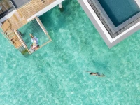 Безупречно интегрированные в ландшафт, террасные павильоны и виллы курорта погружают гостей в природную среду и уравновешивают уединение с открытостью на открытом воздухе в уникальном выражении минималистской элегантности. Каждая из 44 вилл на берегу и 36 надводных вилл курорта с современными интерьерами в палитре спокойных цветов с натуральными текстурами оснащена собственным бассейном для вашего удовольствия. Эти просторные укромные уголки тщательно расположены, чтобы обеспечить полную конфиденциальность и комфорт в сдержанном, изысканном стиле.