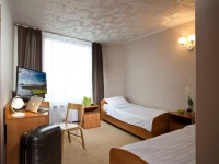 В номере: одна односпальная кровать, две раздельных односпальных кровати или одна двуспальная кровать, прикроватная тумбочка, рабочий стол, письменные принадлежности, гардероб, зеркало, холодильник, светильник, телевизор 21 дюйм, телефон, справочная литература. В ванной: ванна (или душ), туалет, раковина, зеркало, средства личной гигиены, комплект полотенец, тапочки