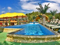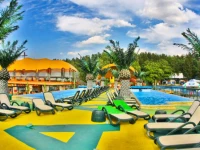 В этом комплексе отдыхали в феврале. Бронировали на выходные. Комплекс делится на три здания, мы жили в "Малибу". На рессепшене при заселении нам огласили пару пунктов к проживанию в отеле: 1) Отель находится в зоне свободной от курения (курить можно только в специально отведенных местах) 2) Из окон не выпрыгивать! Второе нас удивило, но девушка сразу же оговорилась, что из номеров, с вид