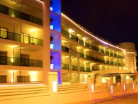 Популярный европейский формат отелей - коробочка+ бассейн. Правда "коробочка" большая и вытянутая перпендикулярно морю .