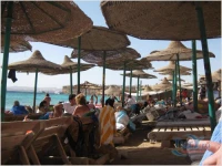 Пляж отеля Эль Фанар, в Хадабе. Вход в море - песок, рядом кораллы. Есть автобус на пляж.
