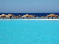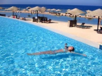 5 ресторанов, 3 бара, 4 бассейна, один детский, два обычных, первый водопадом перетекает во второй и один с морской водой, очень удобно когда на море волнение....