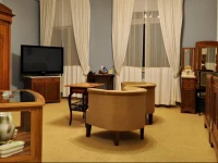 В особняке: каминный зал, музыкальный салон, сигарный салон.