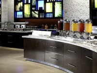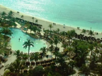 На территории отеля находится уникальный аквариум под открытым небом в естественной лагуне, по дну ее проходит прозрачный туннель – прогуливаясь по нему, можно увидеть тропических рыб и акул с близкого расстояния, а также дельфинарий.