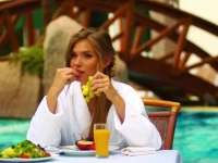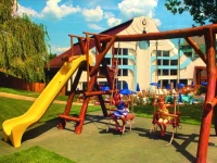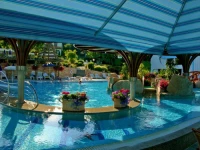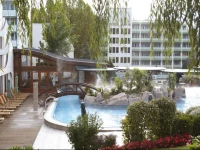 Отель окружает волшебная атмосфера средиземноморья: великолепный бассейн атракционов водной площадью в 1000 кв.метров, термальный бассейн в стиле Древнего Рима, многочисленные лечебные и wellness предложения- всё это ждёт гостей в течение круглого года.