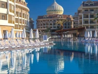 Отель Kirman Belazur Resort And Spa 5* расположен на побережье Средиземного моря, в курортном поселке Богазкент, в 50 м от собственного песчано-галечного пляжа. Это новый современный отель, построенный в османском стиле. Номера отеля красиво оформлены и имеют все удобства, необходимые для комфортного проживания. Для гостей работает спа-салон и тренажерный зал. На обширной зеленой территории отеля расположено несколько бассейнов, с водными горками различной сложности. До аэропорта 40 км.