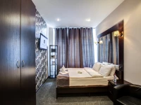 Средний по размеру номер с двуспальной кроватью размера Queen size и ортопедическим матрасом , прикроватные тумбочки. Номер оборудован большой плазменной панелью, стеллажом, сейфом с кодовым замком и платинным шкафом, зона отдыха состоящая из мягкого кожаного дивана и кресла с журнальным столиком, музыкальный центр с usb входом, бесплатным wi-fi, ванной комнате стоит современная душевая кабина с эффектом дождя, гидромассажем и радио, все необходимые туалетные принадлежности (тапочки, шампунь, гель для душа, зубной набор, бритвенный набор, мыло, полотенца из 100% хлопка). Площадь номера 30 м²