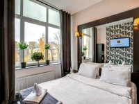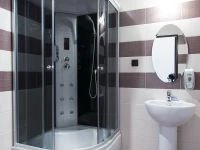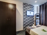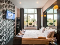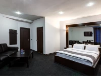 Светлый номер с двуспальной кроватью размера queen size и ортопедическим матрасом либо двумя односпальными и прикроватные тумбочки. Плазменный телевизор, сейф с кодовым замком, зона отдыха состоящая из удобных кресел и журнального столика, так же имеется вместительный платинной шкаф, стеллаж ,wifi, музыкальный центр с usb-входом. В ванной комнате стоит современная душевая кабина с гидромассажем и радио, имеются все необходимые туалетные принадлежности (тапочки, шампунь, гель для душа, мыло, полотенца из 100% хлопка), фен. Площадь номера 25 м²
