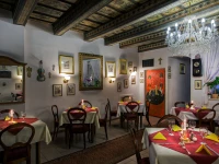 Здание отеля представляет собой старинный городской дом, первые письменные упоминания о котором датированы 15 веком. С эпохи готики сохранились подвальные помещения, где сейчас находится ресторан и винный погреб, эпоху Возрождения представляют живописные балочные перекрытия в ресторане на первом этаже и в некоторых номерах. В 1994-1995 годах была проведена сложная реконструкция, при которой были верно отреставрированы все исторические элементы, чутко дополненные современным высококомфортабельным оснащением. Подлинность истории подчеркнута также оригиналами старинной мебели, выбираемой с тщательным подходом к индивидуальности отдельных номеров.
