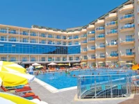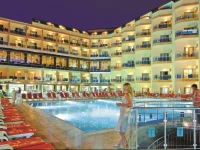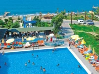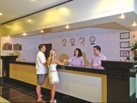 Отдыхали с друзьями в этом отеле в августе 2012 от интурист. По приезду в отель нас заселили почти сразу же. Никаких проблем с расселением не было: номер комфортный, с видом из окна на море, опрятная мебель, ТВ ловит российские каналы, кондиционер работал без перебоев, Wi-Fi на твердую пять. В общем в номере все культурно и цивильно. Убирались каждый день. Питание приемлемое, но не хватает разнооб