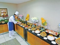 Сам отель симпатичный, правда нам сначала дали небольшой номер с видом на стену соседнего отеля. да нам и неважен был его размер и вид из окнано в нем была душевая кабина в которую мой муж просто не поместился, хоть и не относится к категории людей у которых сначала входит живот потом все остальное. Но когда я зашла на его крики в ванную, извините за выражение я чуть не подохла со смеху. Я никогда