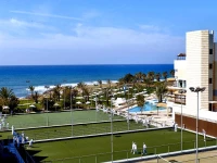 Развлечения и спорт: уход за лицом, гидромассаж для талассотерапии, 4 освещаемых теннисных корта (искусственная трава и песок), зеленый корт для игры в шары, карточный стол, танцы, тематические вечера, развлекательная программа.