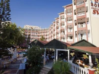 Здесь отдыхал с компанией друзей, очень круто и весело, нам понравилось, это я говорю от лица 8 человек)))). Отель находится в хорошем месте можно выйти прогуляться, рядом есть таксофоны, супермаркеты, небольшие магазины и т.п. До Алании можно добраться на автобусе, в принципе ехать недолго, а там бары, клубы, большие магазины и прочее. На территории всё очень классно обустроено, до моря отсюда