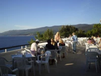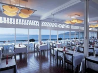 Ресторан отеля предлагает богатый ассортимент блюд на завтрок и ужин с захватывающим видом на море.