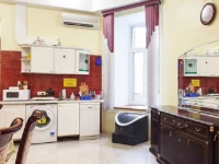Хостел находится на тихой улице недалеко от центра города на 2 этаже, лифта нет. Чай, кофе, wi-fi бесплатно. Кухня оборудована всем, чем нужно, большой обеденный стол человек на 12. В хостеле 3 душевые, 3 туалета, ванная комната с тремя умывальниками и стиральной машиной (около 25 грн за одну загрузку).