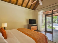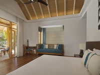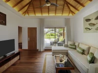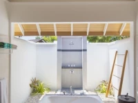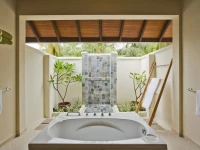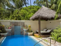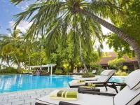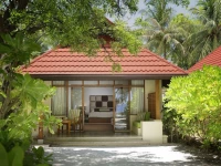 Отдыхали в Kurumba в начале марта. Компактный остров, который можно обойти за 15 минут неспешным шагом. У нас был домик метрах в 10 от моря. Удобно. К чужим не заглядывала, наш номер мне понравился - дизайн сдержанный, материалы качественные. Ванная комната с небольшим двориком, ванна и душ, получаются, под крышей, но без стен. За каждым номером закреплено нужное количество лежаков, пляжный матра