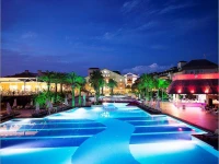 Отель работает по системе ALL INCLUSIVE: 24 часа – завтрак, обед и ужин (шведский стол), поздний завтрак, богатое разнообразие национальной выпечки, горячие и холодные закуски, мороженое в определенное время в детском клубе, гамбургеры, пицца, спагетти, салаты, чай/кофе, выпечка, ужин в ресторанах A la carte по предварительному заказу, ночные закуски; алкогольные и безалкогольные напитки местного и некоторые импортного производства, свежевыжатые соки и коктейли в витамин-баре, турецкийкофе.Импортные вина, шампанское, ликёры, коньяк и виски класса люкс, кальян, напитки в бутылках, заказ еды в номер по специальному меню, Room Service (платно)