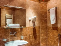 Все номера оформлены в классическом стиле и оснащены телевизором с плоским экраном и холодильником. Ванные комнаты укомплектованы феном, халатом и тапочками.