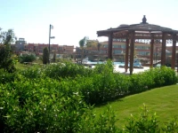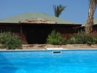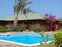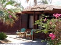 Собственно Abu Dabab это название места, а Diving Lodge можно перевести, как хижина для дайвера. С какого перепугу отелю поставили 4* - непонятно. Скорее это 2+*. У отеля совершенно крошечная территория, на которой стоит несколько одноэтажных деревянных домиков, малюсенький бассейнчик, даже ресепшен под открытым небом. Зелень вроде как и есть, но очень мало - пальмы не создают тень, совершенно нет