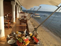 В ресторане отеля гостям предлагается на выбор главный зал, расположенный на открытой террасе, или столики под пальмами возле площадки для барбекю. В меню – в основном рыбные блюда, приготовленные по оригинальным местным рецептам, и морепродукты на гриле. Любители экзотики могут пообедать по-суахилийски: сидя на тростниковой циновке на полу. Бар ресторана – одно из самых популярных мест в округе. По вечерам здесь устраиваются развлекательные программы, а бармен предлагает попробовать фирменный коктейль "Old Pal", а также местное пиво и кокосовое молоко.