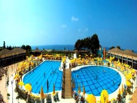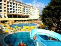 Отель Laphetos Beach Resort & Spa 5* расположен на побережье Средиземного моря, в 18 км от города Сиде, в курортном районе Кызылот и в 100 м от собственного песчано-галечного пляжа. В комплекс отеля входит 6-этажное здание и обширная уютная территория с бассейнами, водными горками, спортивными площадками и игровой зоной для маленьких гостей отеля. К услугам гостей работает спа-центр. До аэропорта 85 км.