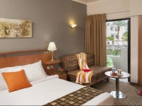 972 8-630-0666Городской отель, рядом с центром. Территория не большая. Корпуса выстроены вокруг бассейна. В каждом корпусе есть лифт. Состоит из главного 2-х этажного здания и пяти 3-х этажных корпусов. Бассейн не большой, с пресной водой. Лежаков и зонтиков довольно много. Ресторан довольно большой, разделен на две части, но выглядит скромненько. Утром пи