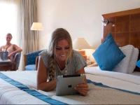 Ездили с мамой. Приехали из аэропорта Марса-Алам в 9 утра. Заселение в 14-00. Сразу, конечно, стали разводить на доплату-100 баксов за вид на море. Позже выяснилось, что многие купились. Кто не купился-отправился на пляж и ждал времени заселения, а я предложила 30 баксов и через 5 минут нас с вещами отправили в номер 1212. Отель очень понравился-небольшой, чистенький и уютный. Персонал ненавязчивы